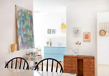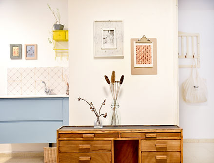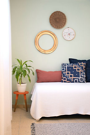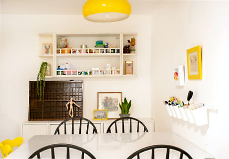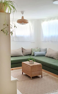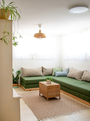 עיצוב קומת מרתף בבית פרטי - חדר שינה, איזור האירוח ואיזור היצירה. עיצוב יש מאין.